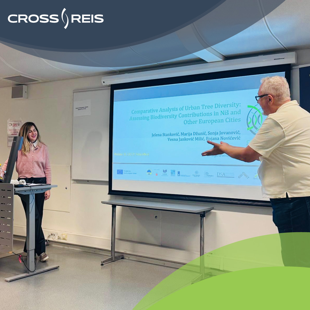 As part of the Nobel X // PhD X scientific programme, Sonja Jovanović and Marija Džunić from the Faculty of Economics, University of Niš, members of the CROSS-REIS project team, presented and discussed ongoing CROSS-REIS research on urban biodiversity in the city of Niš. Their presentation entitled “Assessing Biodiversity Contributions in Niš and Other European Cities” highlighted comparative and data-driven approaches to assessing biodiversity contributions in urban environments, emphasizing the role of green infrastructure and ecosystem services in strengthening ecological resilience and informing sustainable urban planning.